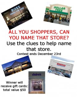It's that time of the year, the SHOPPING begins.  Our new contest challenges you to NAME THAT STORE.